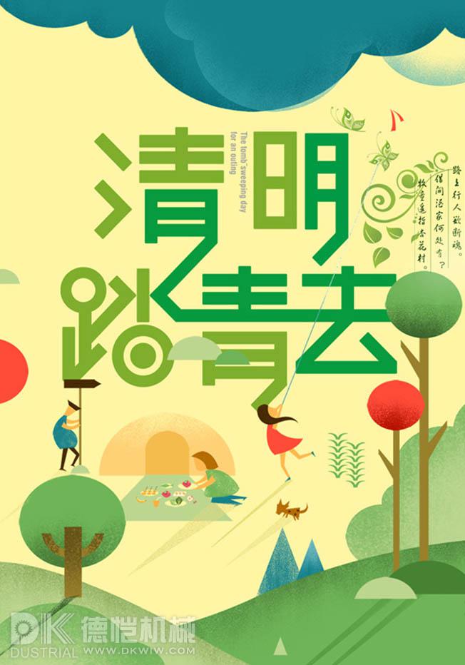 清明節原是指春分后十五天,1935年中華民國政府明定4月5日為國定假日清明節,也叫做民族掃墓節。2006年5月20日,經國務院批準,將清明節列入第一批國家級非物質文化遺產名錄。德愷機械